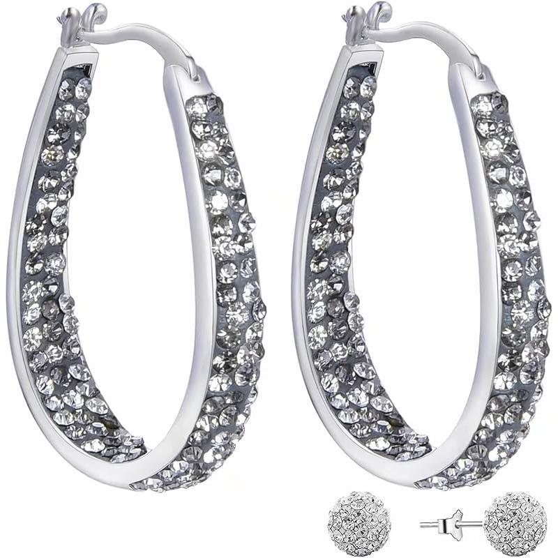 ❤️🤍💙[[American Flag Earrings]:American flag stand for pure and holy patriotism spirit.These crystal hoop earrings uses the American flag color scheme.Classic mix of red white and blue crystals.You can wear these patriotic earrings on Independence Day to show patriotic Spirit.❤️🤍💙[Crystal Hoop Earrings]:These 4th of july hoop earrings for women feature high quality crystal in setting.Each crystal is inlaid by hand to ensure the quality of each earring.❤️🤍💙[Size Information]:These patriotic hoop earrings measure 1.25" in length and are 0.91" wide weight 1.185 ounces.Sturdy hinged post snaps into U style back.❤️🤍💙[Silver Plated]:These gorgeous flag earrings are made of Brass and silver plated. Nickel& lead free and comfortable for all day wearing.