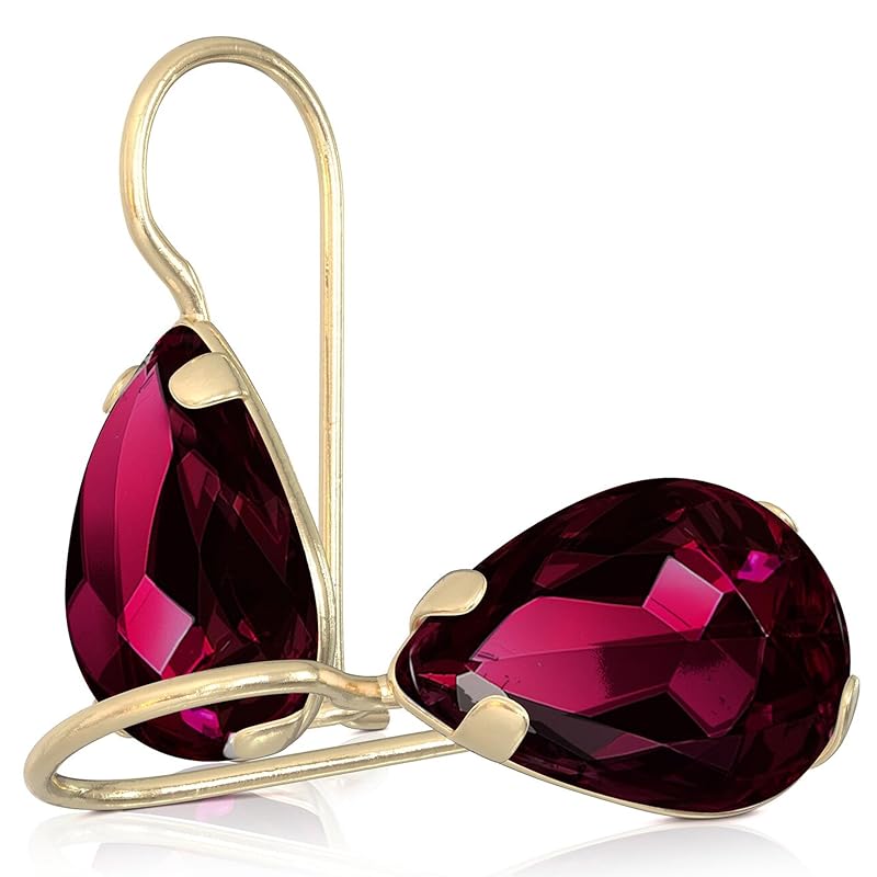 - Elegant Design: These gold dangle earrings for women meticulously set with 7x10mm Simulated Teardrop Ruby stone.The high-quality 14K Solid Gold Ruby Earrings are crafted in solid gold, offering an elegant style in 14k gold earrings for women.