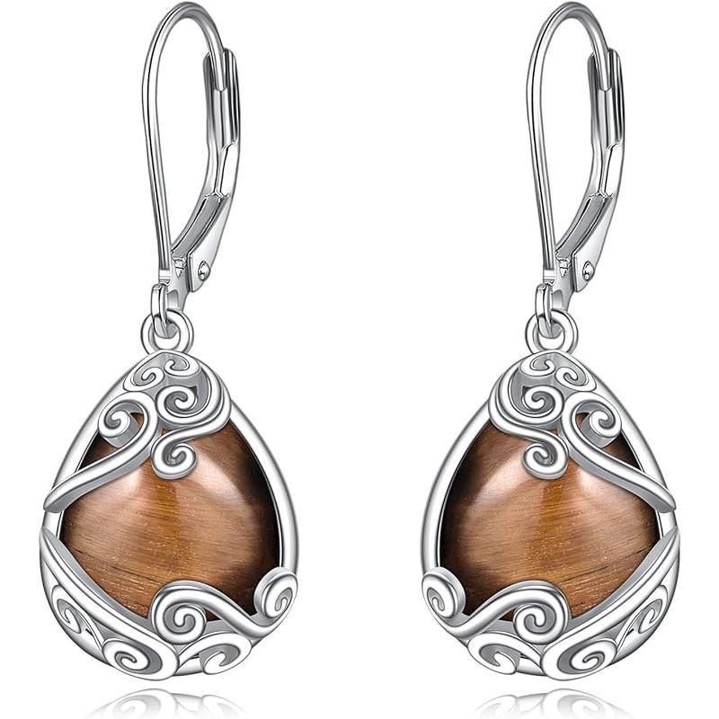 Moonstone Filigree Drop Dangle Teardrop Earrings 925 Sterling Silver Moonstone Leverback Earrings for Women Jewelry Gifts