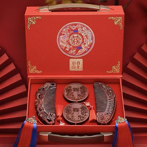 Sandalwood dragon and phoenix mirror comb wedding gift to the bride 520 high-end wedding ceremony for men and women.
