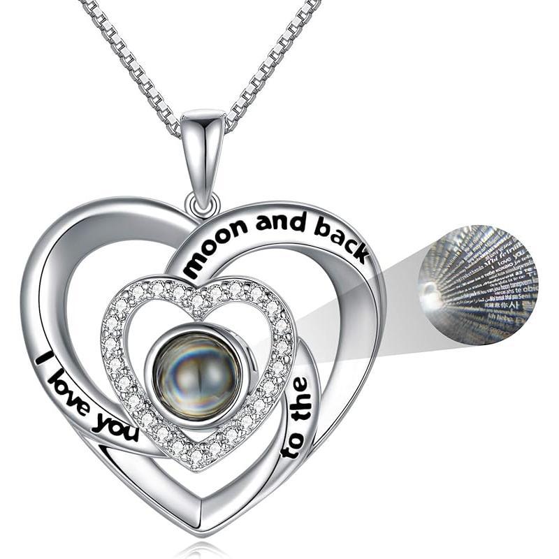 925 Sterling Silver I Love You 100 Languages Necklace I Love You Forever Infinity Heart Mom Sunflower Projection Pendant Necklace for Women Mother's Day Gift